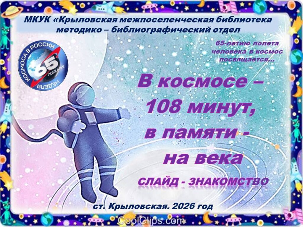 В рамках Недели космоса предлагаем вам слайд – знакомство «В космосе – 108 минут, в памяти – на века».